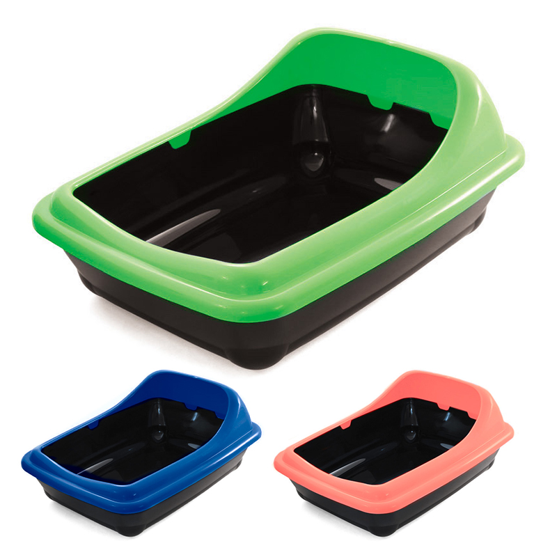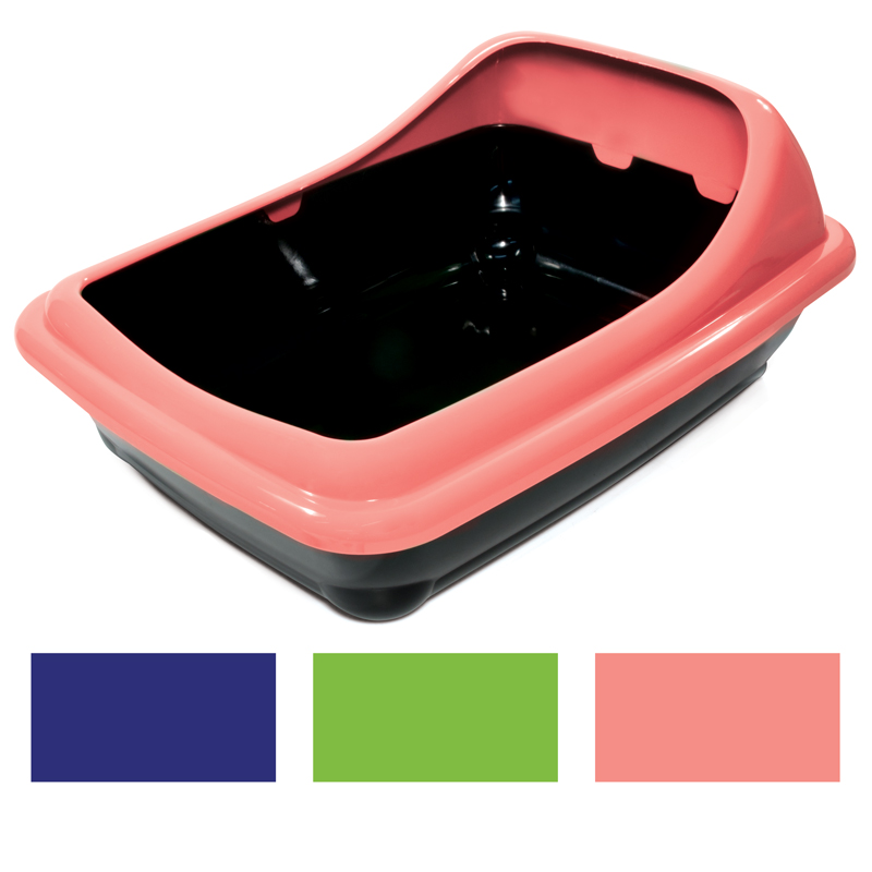 Туалет с высоким асимметричным бортом - идеальный вариант для вашего четвероногого питомца. Съемный борт-рамка удобен для закрепления пластикового пакета, максимально упрощает уборку и предотвращает разбрасывание наполнителя при закапывании. Туалет изготовлен из высококачественного пластика и легко чистится под струей воды при помощи моющих бытовых средств. Размеры изделия: 455х350х200мм. Цвета съемных бортов к черным лоткам: салатовый, синий, коралловый