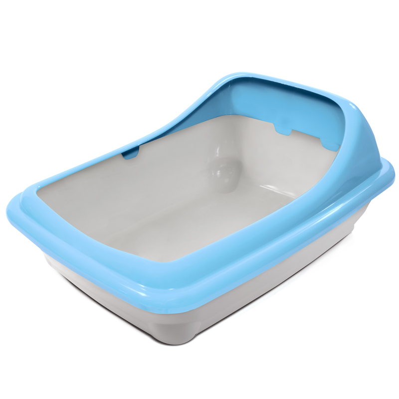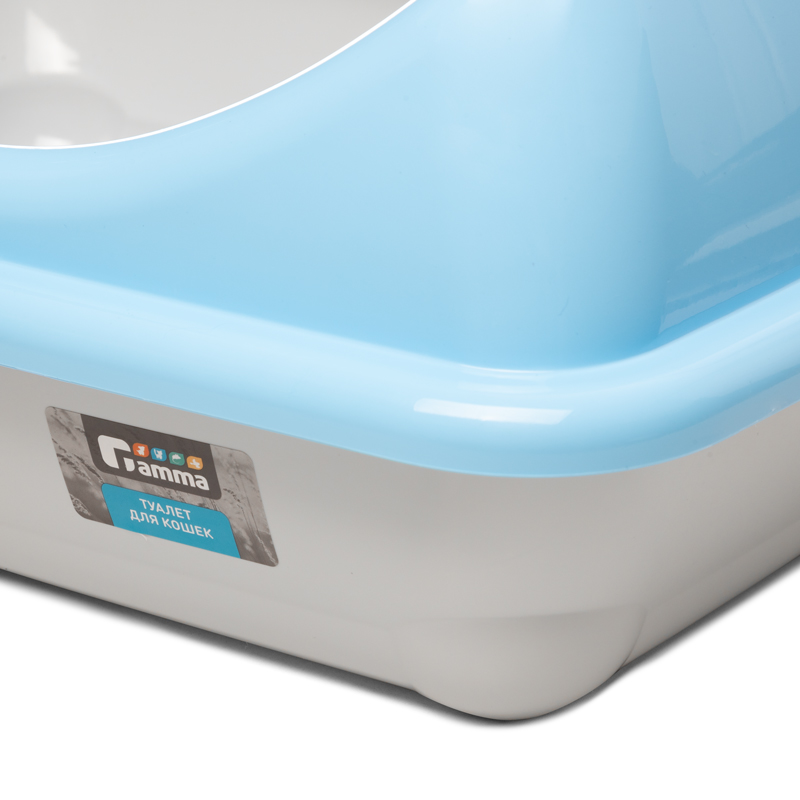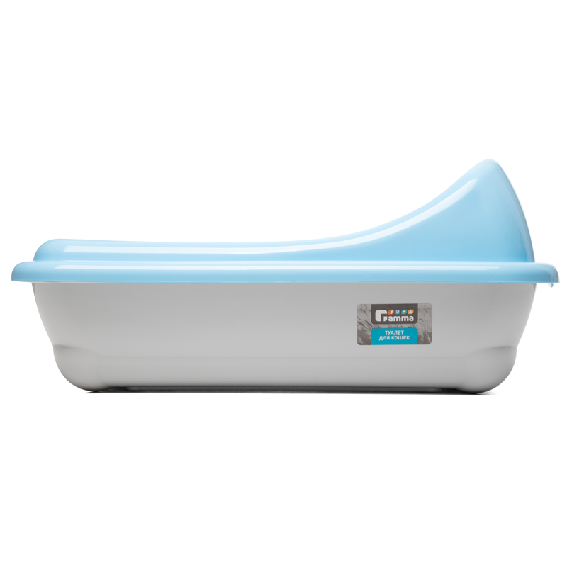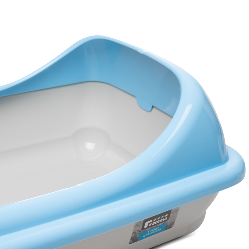 Туалет для кошек прямоугольный с ассиметричным бортом "Волна", серый/голубой, 455*350*200мм