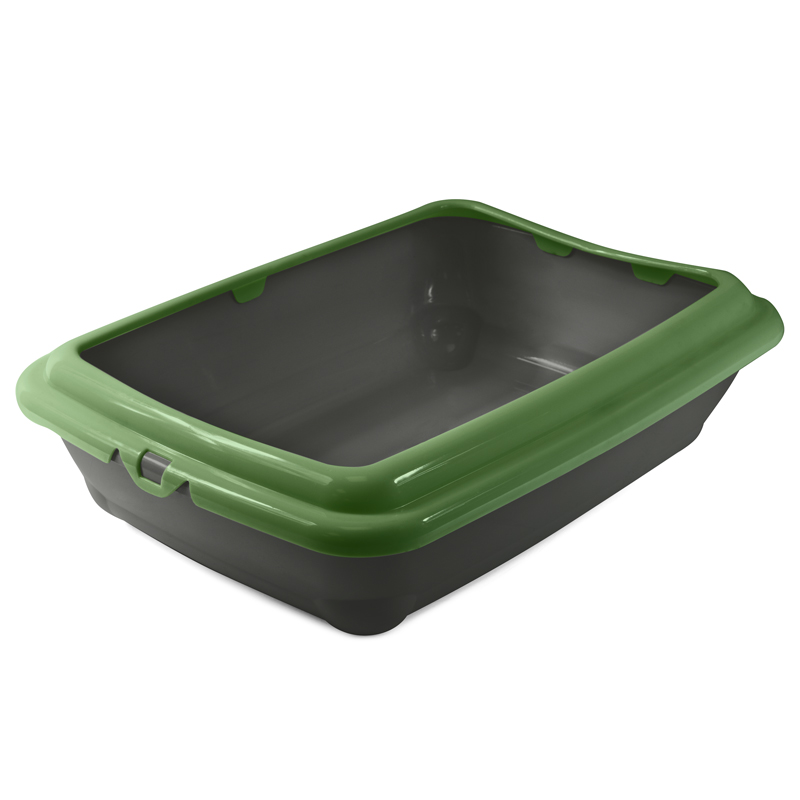 Туалет для кошек прямоугольный с бортом "Штиль", серый/оливковый, 455*350*125мм