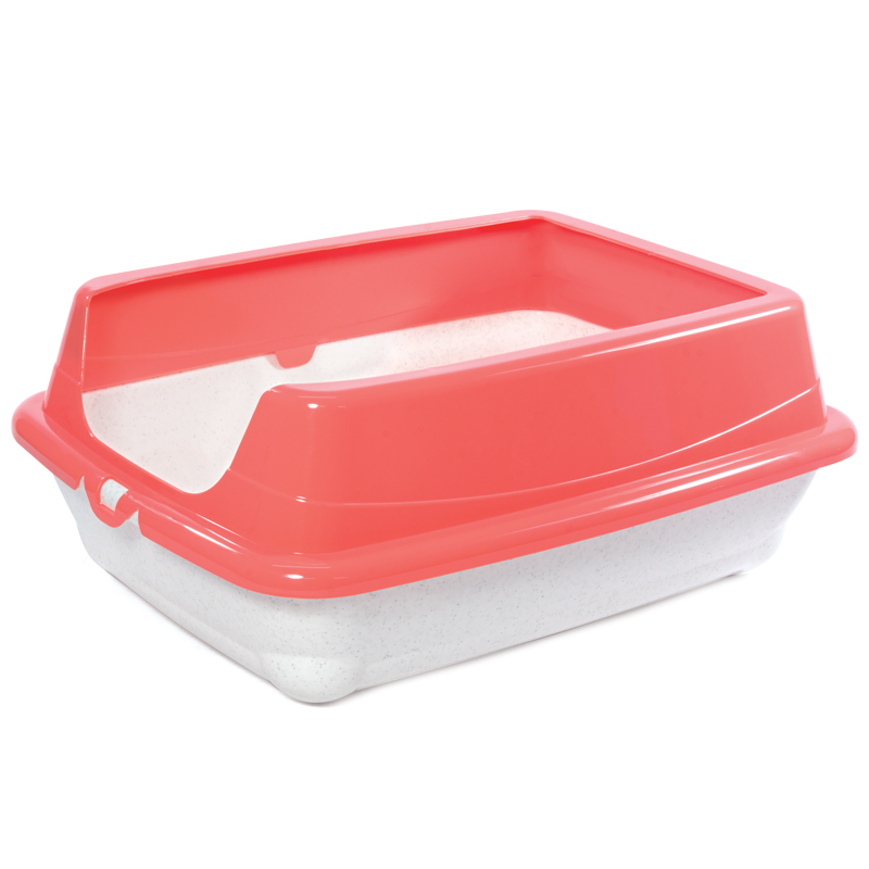 Туалет для кошек прямоугольный с высоким бортом "Пушок", коралловый, 455*350*190мм