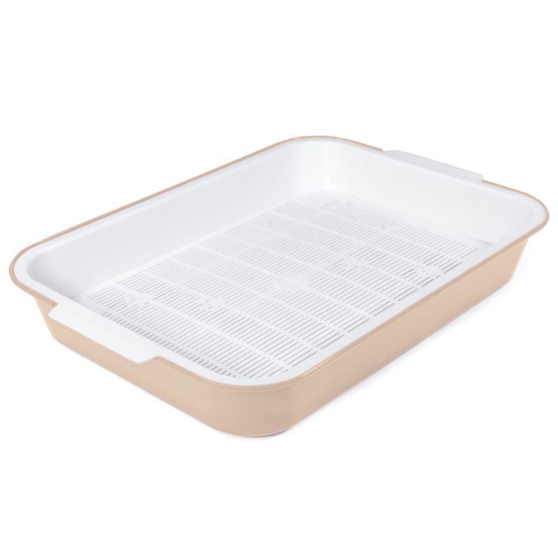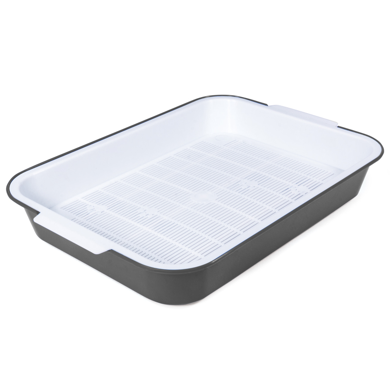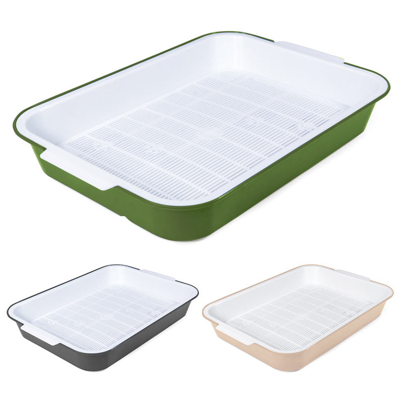 Туалет c белой сеткой - универсальный аксессуар для вашего четвероногого питомца. Такая модель идеально подходит для кошек, не любящих наполнитель. Съемная сетка максимально упрощает уборку, а компактные габариты изделия позволят разместить его где угодно с комфортом для животного. Туалет изготовлен из высококачественного пластика и легко чистится под струет воды при помощи моющих бытовых средств. Цвет: бежевый, темно-оливковый, темно-серый.