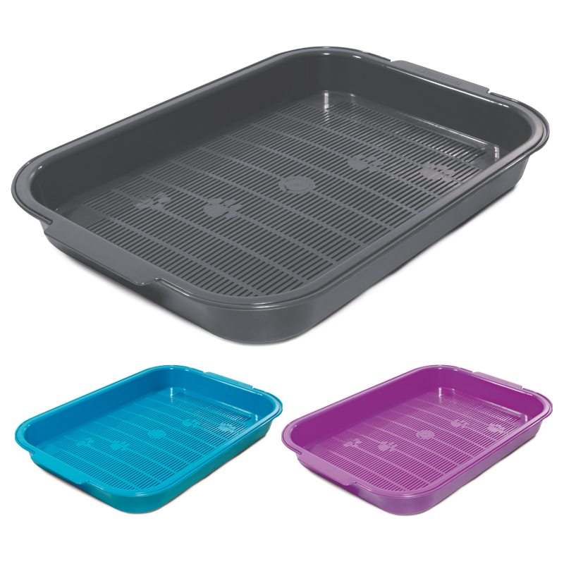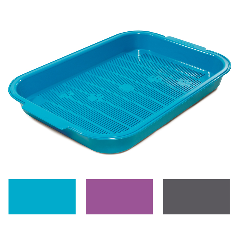 Туалет с цветной сеткой (в цвет изделия) - универсальный аксессуар для вашего четвероногого питомца. Такая модель идеально подходит для кошек, не любящих наполнитель. Съемная цветная сетка максимально упрощает уборку, а компактные габариты изделия позволят разместить его где угодно с комфортом для животного. Туалет изготовлен из высококачественного пластика и легко чистится под струет воды при помощи моющих бытовых средств. Размеры изделия: 380х280х55мм. Цвета лотков и сеток: голубой, оранжевый, серый, зеленый, фиолетовый, красный, желтый.