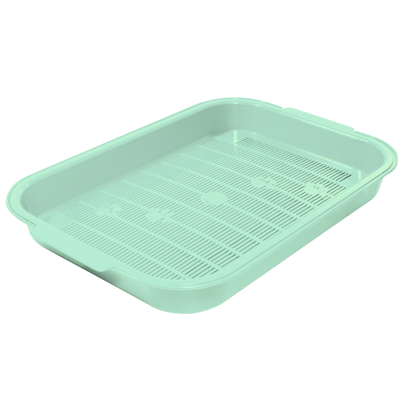 Туалет с цветной сеткой (в цвет изделия) - универсальный аксессуар для вашего четвероногого питомца. Такая модель идеально подходит для кошек, не любящих наполнитель. Съемная цветная сетка максимально упрощает уборку, а компактные габариты изделия позволят разместить его где угодно с комфортом для животного. Туалет изготовлен из высококачественного пластика и легко чистится под струет воды при помощи моющих бытовых средств. Размеры изделия: 380х280х55мм.