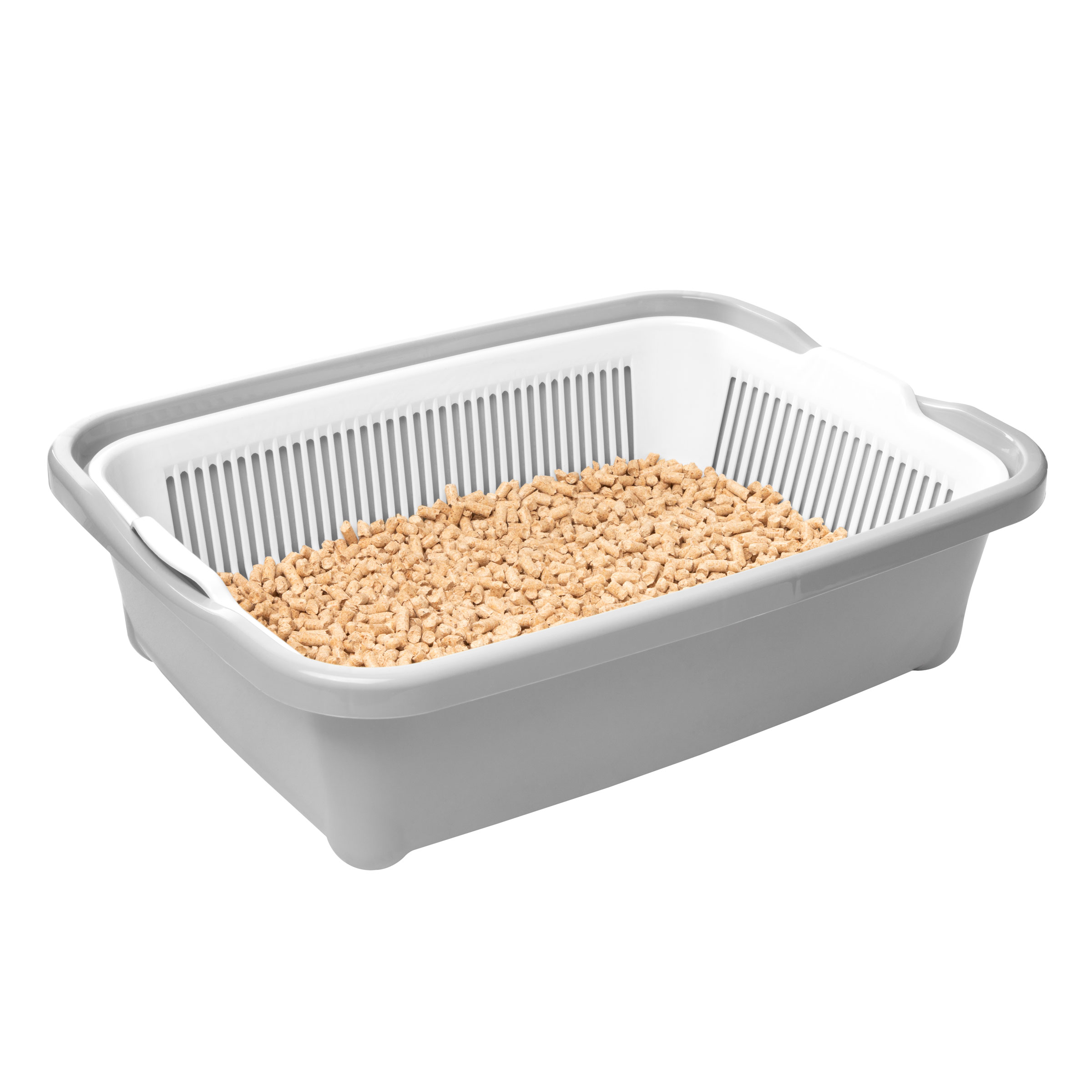 Туалет для кошек высокий с сеткой "Дюна", светло-серый 420*320*125мм, Gamma