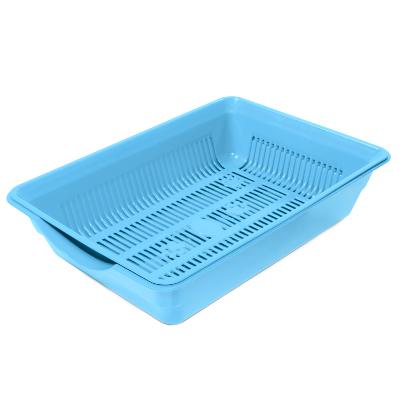 Туалет для кошек высокий с цветной сеткой "Лапки", голубой, 350*250*90мм
