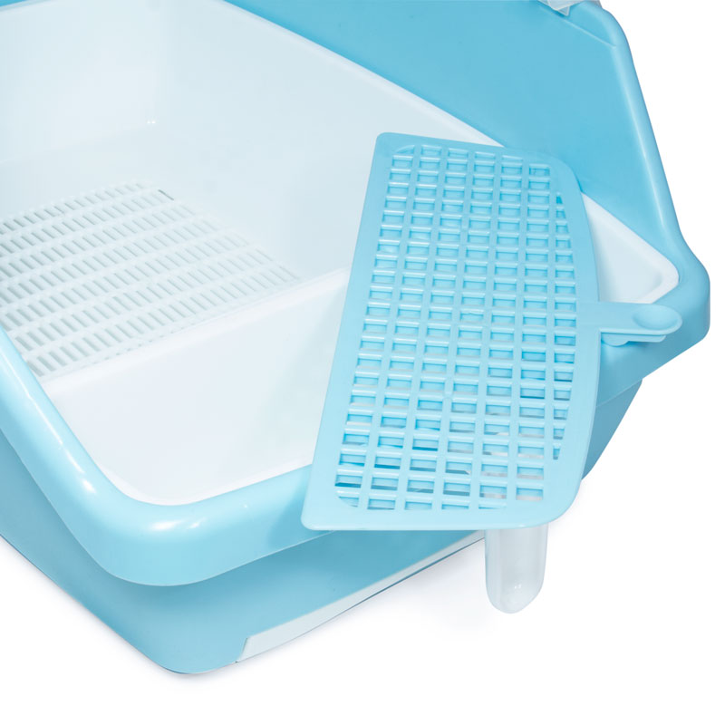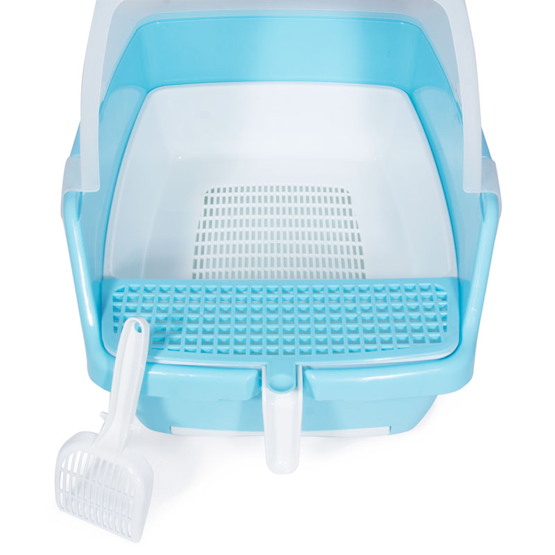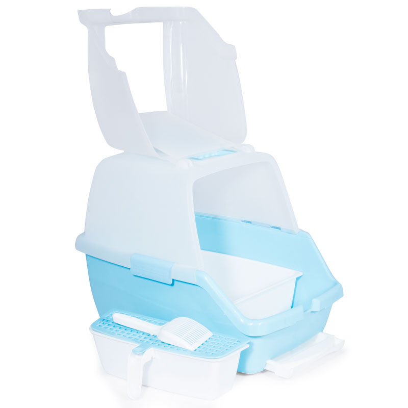 Туалет для кошек закрытый с выдвижным поддоном «Гранд» (совок и сетка в комплекте), голубой/белый, 550*400*420мм, серия HYGIENE, Triol