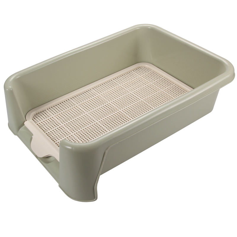 Большой прямоугольный туалет с бортами. Съемная сетка позволит лапкам вашего питомца оставаться сухими. Цвет: оливковый. Размер: 520*400*150мм