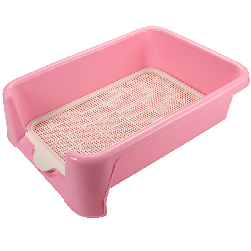 Маленький прямоугольный туалет с бортами и сеткой. Съемная сетка позволит лапкам вашего питомца оставаться сухими. Цвет: розовый. Размер: 400*400*155мм.