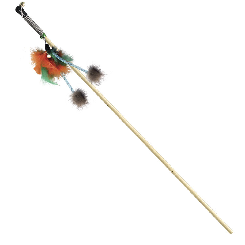 Яркая и функциональная удочка-дразнилка "Фестиваль" - это всегда актуальный аксессуар для усатых-полосатых. Такая удочка и развлекает питомца, и дрессирует одновременно, помогая кошке также держать мыщцы в тонусе, развивать сообразительность и даже умственные способности. Игрушка имеет деревянную основу и декорирована оригинальными элементами - яркие подвижные ленточки, перья и меховые шарики привлекут даже самых пассивных кошечек, вовлекая их в процесс веселой охоты. Размер: 510мм.