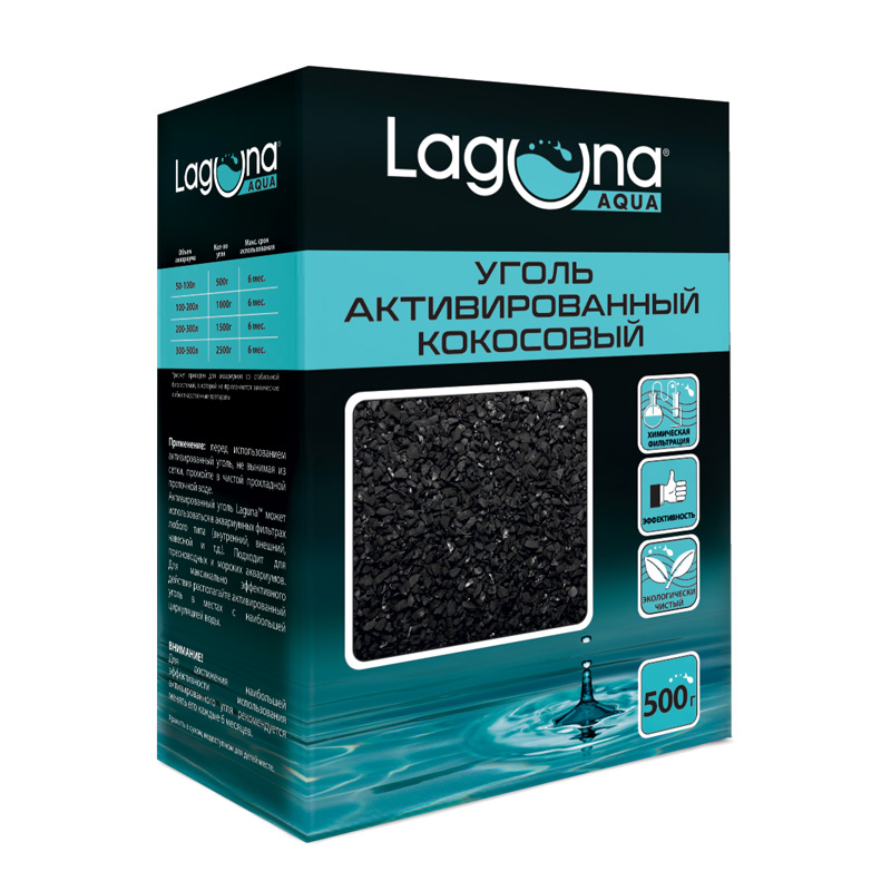 Кокосовый активированный уголь получают из скорлупы кокосового ореха, подвергнутой высокотемпературной обработке. Этот вид аквариумного активированного угля аналогичен углю, который используется при очистке питьевой воды, он не содержит посторонних примесей. Наполнитель для фильтров Уголь активированный кокосовый Laguna™ может использоваться в фильтрах любого типа (внутренних, внешних, каскадных). Кокосовый уголь эффективен не только при избавлении от неприятных запахов и помутнении воды, но также помогает устранить вредные микроорганизмы, карболовую кислоту (фенол), дубильную кислоту, остаточный хлор из водопроводной воды. Эффективно способствует удалению из аквариумной воды нитратов, нитритов, других химических и микробиологических загрязнений. При использовании вместе с бионаполнителями в фильтрационной системе полностью нормализует химические и биологические параметры аквариумной воды.
